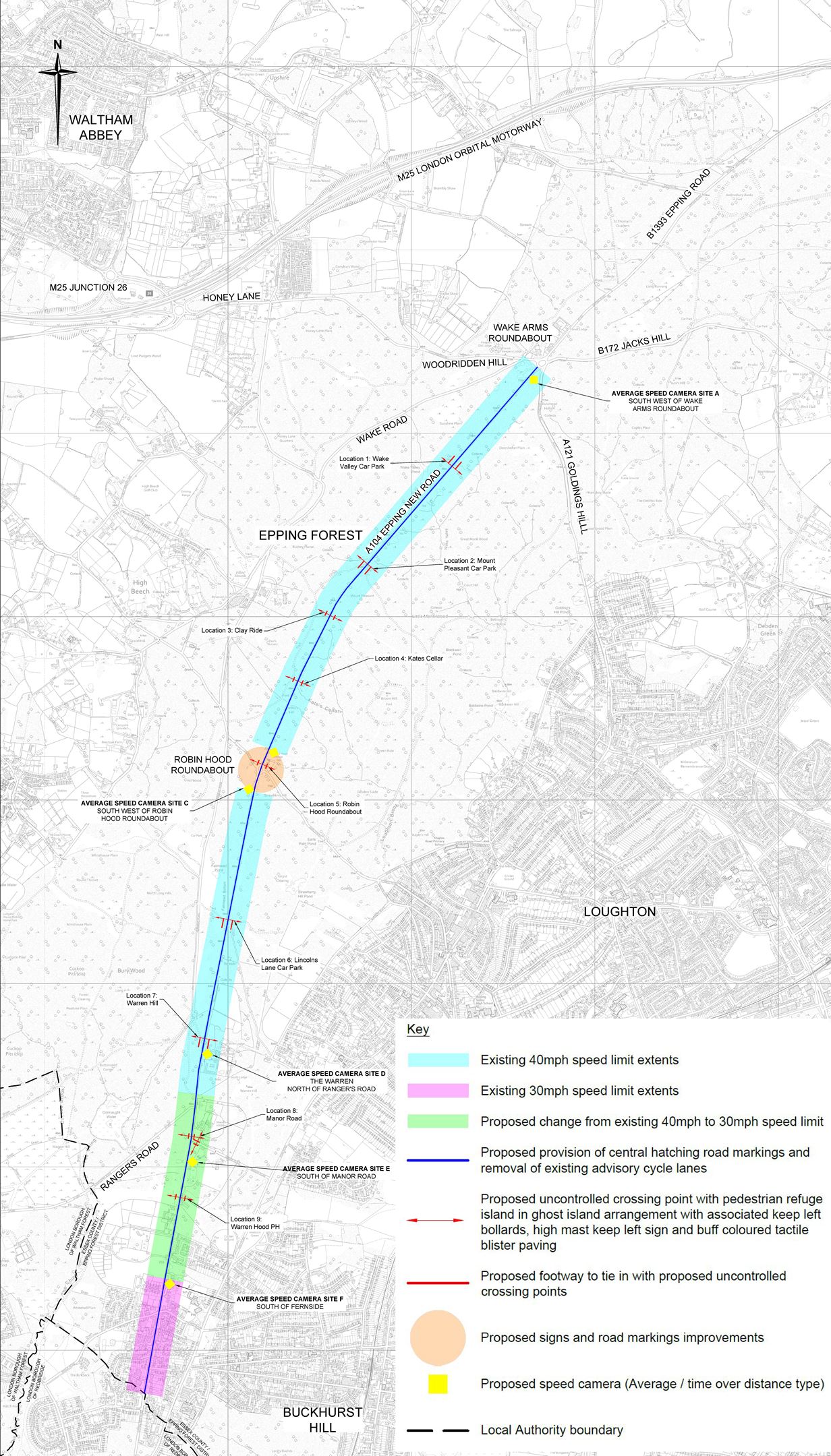 Image: A104 Epping Forest Scheme Map, Source: Essex Highways. Click the image to see the full-size file.
